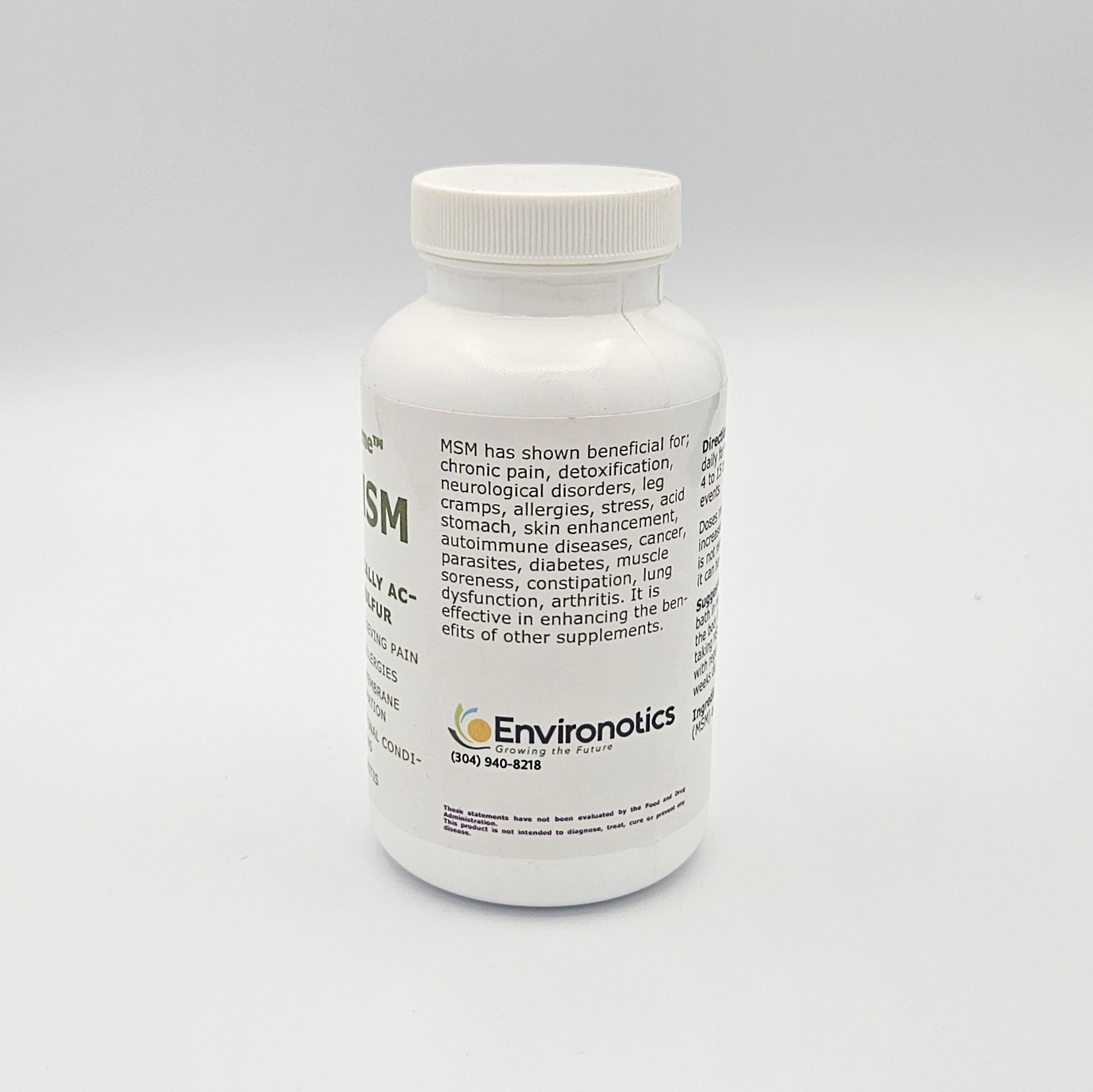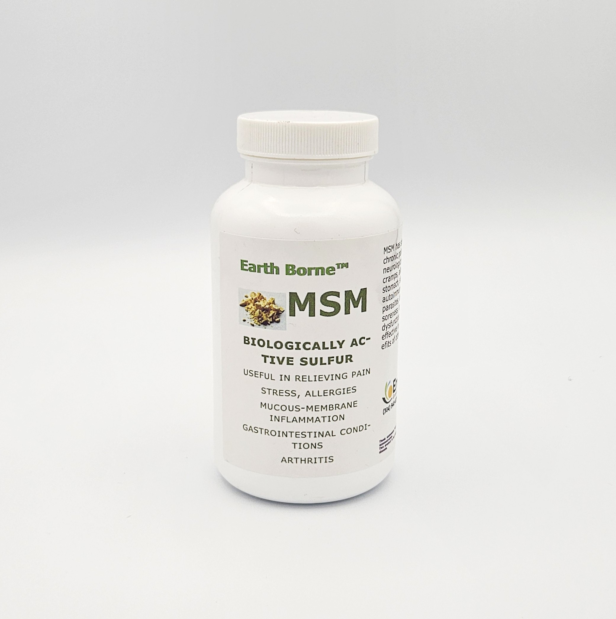 MSM is a biologically Active Sulfur. MSM has been shown to be beneficial for chronic pain, detoxification, neurological disorders, leg cramps, allergies, stress, acid stomach, skin enhancement, autoimmune diseases, cancer, parasites, diabetes, muscle soreness, constipation, lung dysfunction, arthritis. It is effective in enhancing the benefits of other supplements Useful in relieving pain, stress, allergies, and mucous membrane inflammation.
